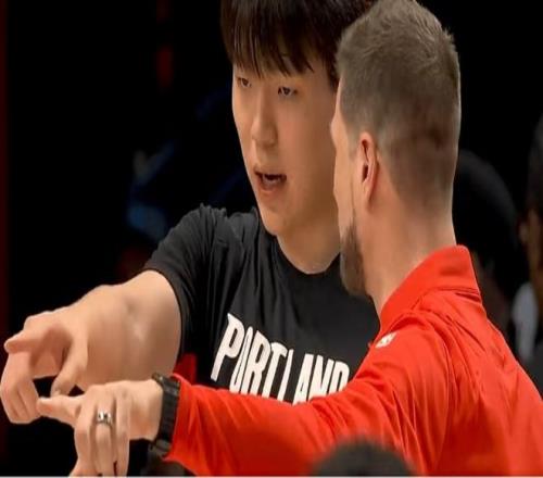 杨瀚森赛前主动和斯普利特沟通交流。