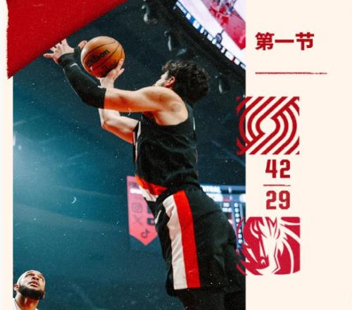 开拓者首节得到42分,创造球队本赛季首节最高分纪录。